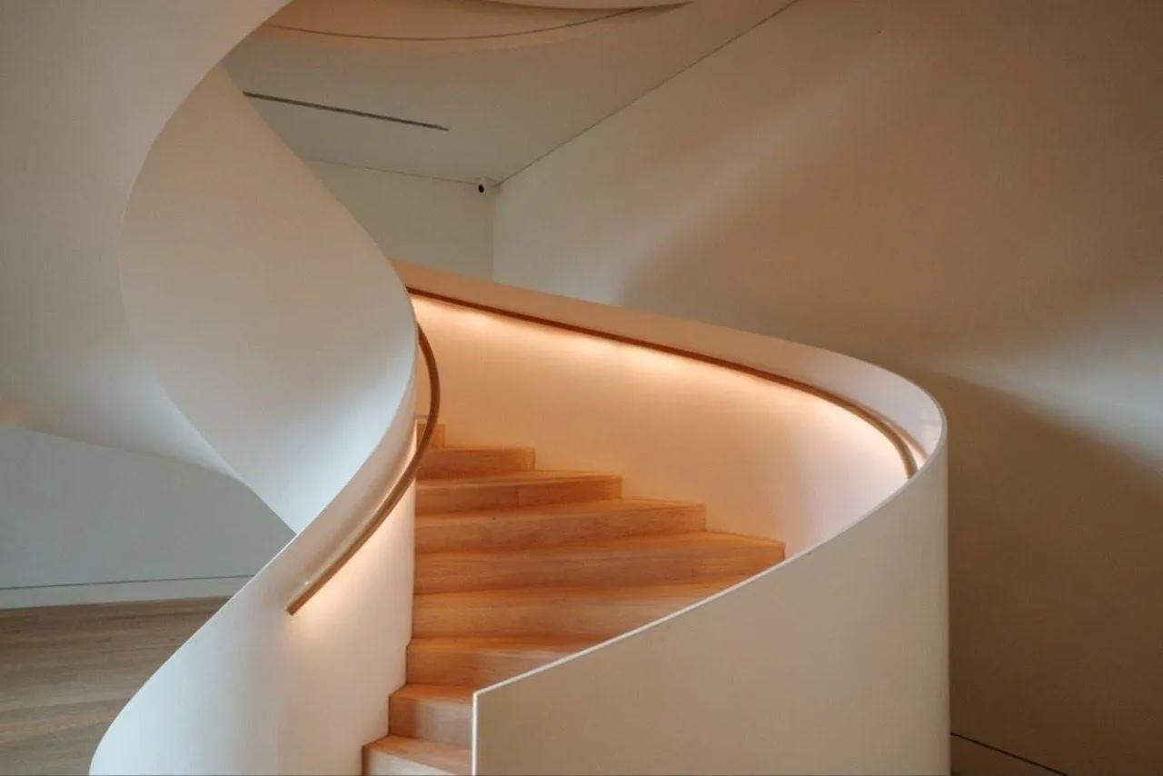Идея для вашей лестницы: Рассмотрите возможность интеграции "умной" подсветки. Светодиодная лента, встроенная под ступенями или вдоль стены, не только добавит эффектности в вечернее время, но и повысит безопасность, мягко освещая путь.