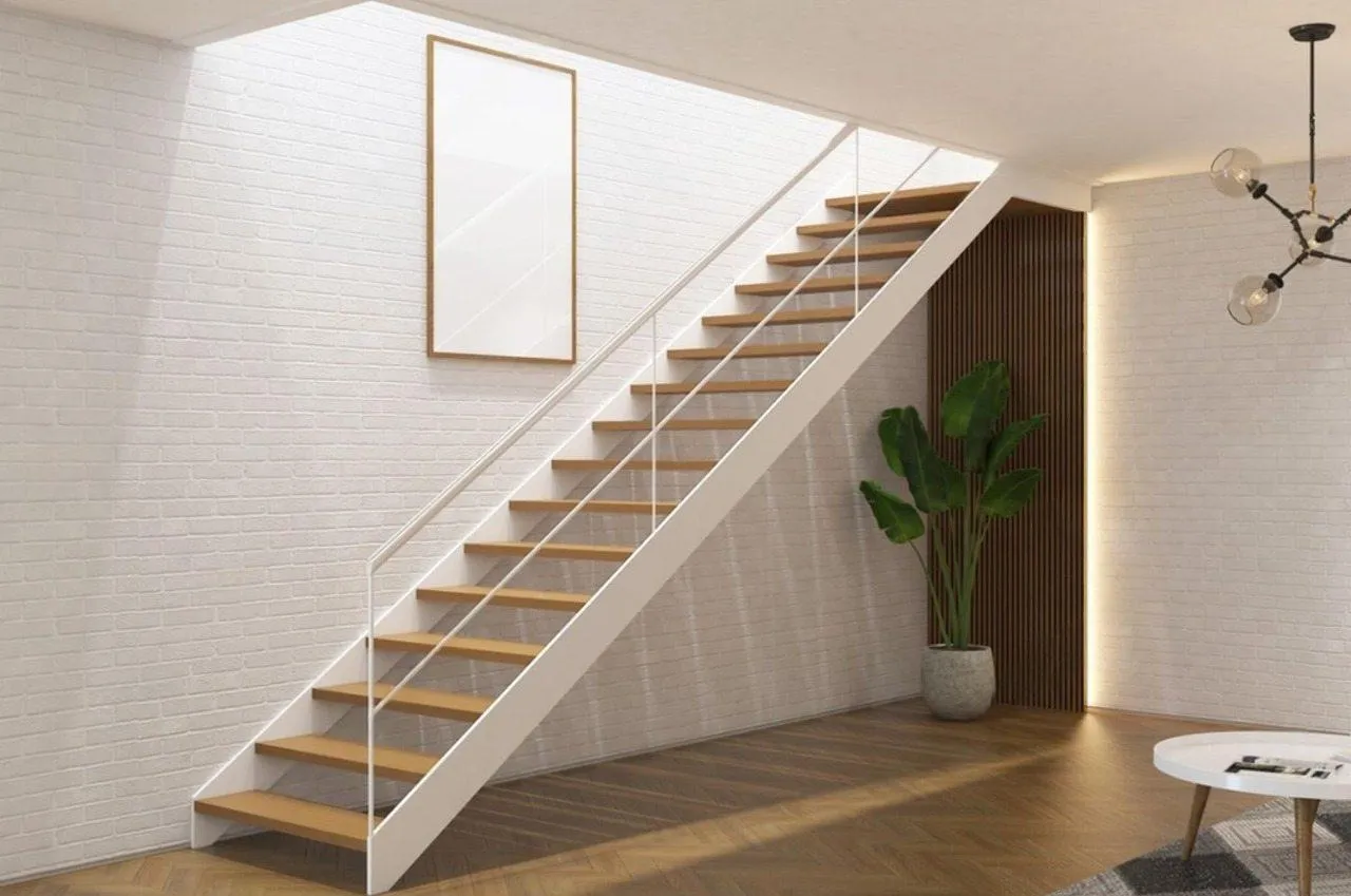 Отделка прямой лестницы на металлокаркасе – надёжность для вашего дома